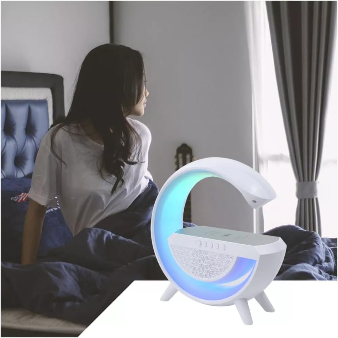 MULTIFUNCIONAL: combina varias funciones, como un Bocina Bluetooth inteligente, una lámpara de proyección, carga inalámbrica, una lámpara de escritorio con ambiente y despertador al amanecer, lo que lo convierte en un complemento versátil para tu hogar u oficina.