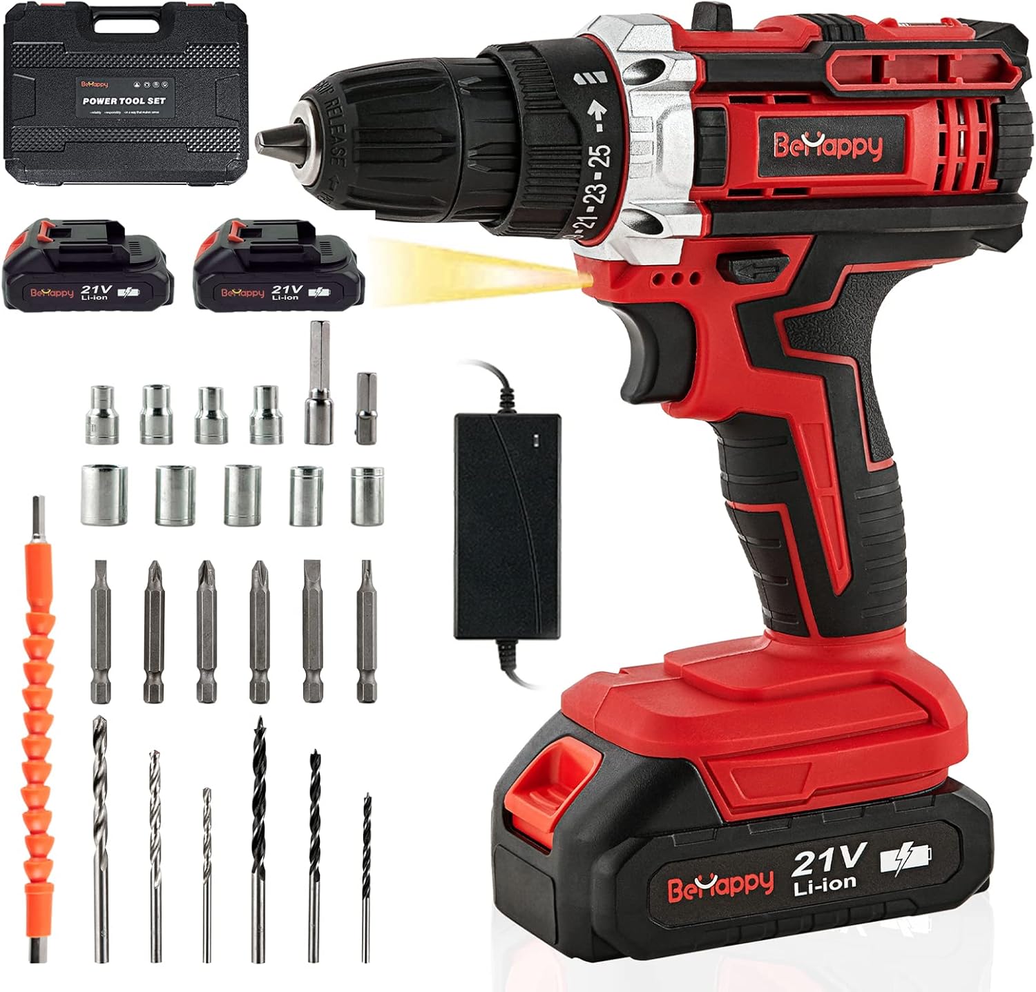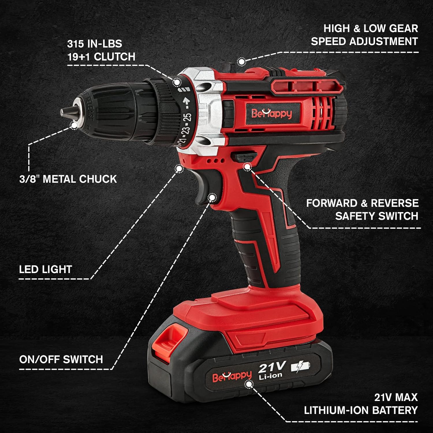 Potente Motor de 21V ⚡: Proporciona un par máximo de 45 Nm, permitiendo perforar y atornillar en diversos materiales con facilidad.